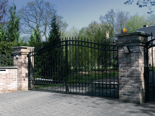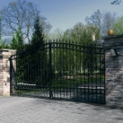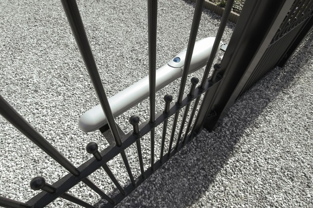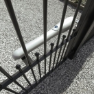 - Łatwy montaż bez spawania, uchwyty przykręcane do słupka i skrzydła bramy.