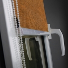 W przeciwieństwie do znanych rozwiązań konkurencyjnych, żyłki rolety prowadzone są pod tkaniną, a nie obok niej. Dzięki temu, nie zahaczysz o nie ręką przy otwieraniu okna, sama roleta zaś nie zaczepia o klamkę okna.